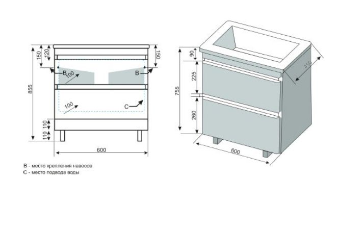 - Раковина Atlantica 60 (ш/г/в): 600x450x145 мм