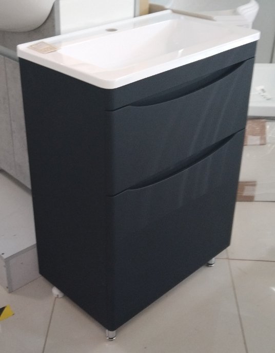 Комплект мебели Style Line Бергамо мини 70 Люкс Plus черный антискрейч в напольном исполнении станет стильным акцентом ванной комнаты. Благородный тёмный оттенок тумбы элегантно контрастирует с белой раковиной, изготовленной из качественного литьевого мрамора. Изделие дополняет многофункциональное зеркало-шкаф с внутренним отделением, оборудованным эстетичными стеклянными полками для хранения. Светодиодная подсветка, встроенная по периметру зеркального полотна создаёт приятное и мягкое освещение, регулируемое при помощи удобного сенсорного выключателя.