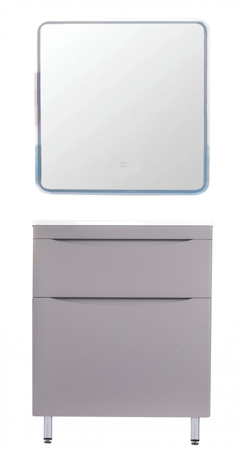Комплект напольный Style Line Бергамо мини 70 Люкс Plus серый антискрейч отличается сдержанным лаконичным дизайном и максимально продуманным функциональным оснащением. Вместительная тумба с эргономичной встроенной раковиной из литьевого мрамора имеет два выдвижных ящика – один глубокий (нижний) и другой верхний для более мелких предметов. Завершает умывальную зону распашное зеркало-шкаф со светодиодной подсветкой по периметру, внутри изделия расположены удобные и эстетичные стеклянные полки.
