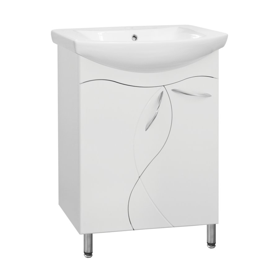 Комплект мебели Style Line Амелия 65 – это красивый и стильный вариант для ванных комнат стандартных размеров. Выполненный в базовом белом цвете, набор характеризуется плавными фрезерованными линиями и строгими формами. Для функционального удобства в зеркале со шкафчиком установлена галогеновая подсветка с розеткой и выключателем, а напольная тумба оборудована вместительным внутренним отделением с полкой.