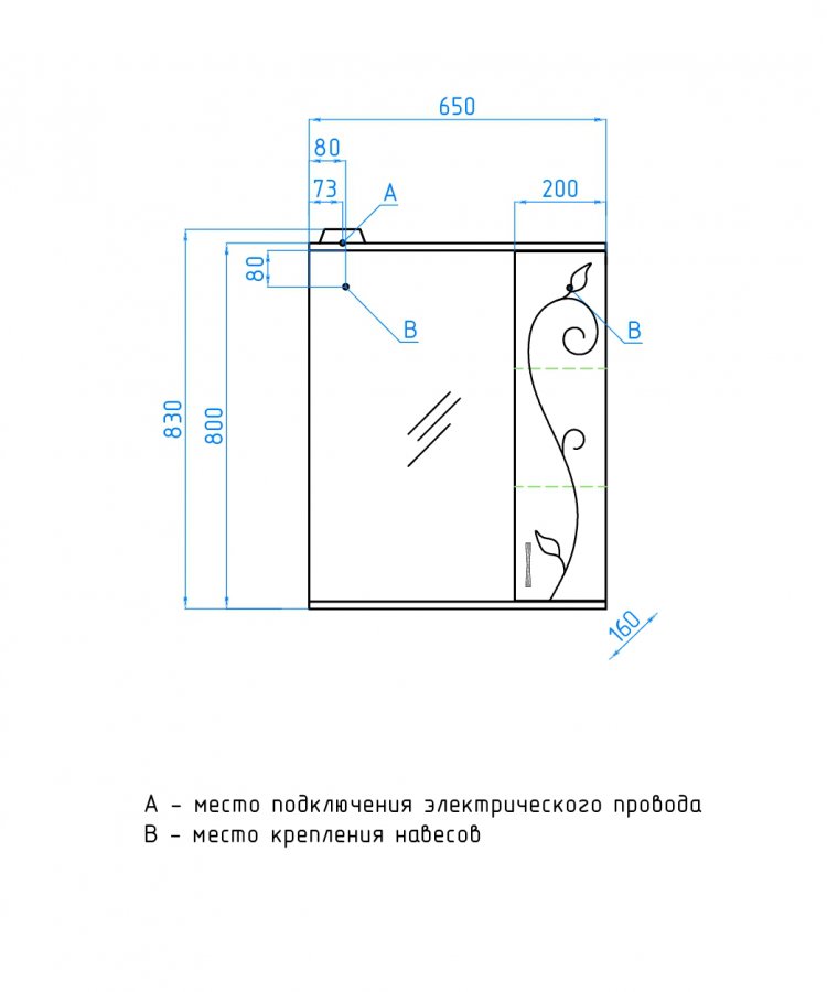 - Зеркало-шкаф (ш/г/в): 650x160x830 мм