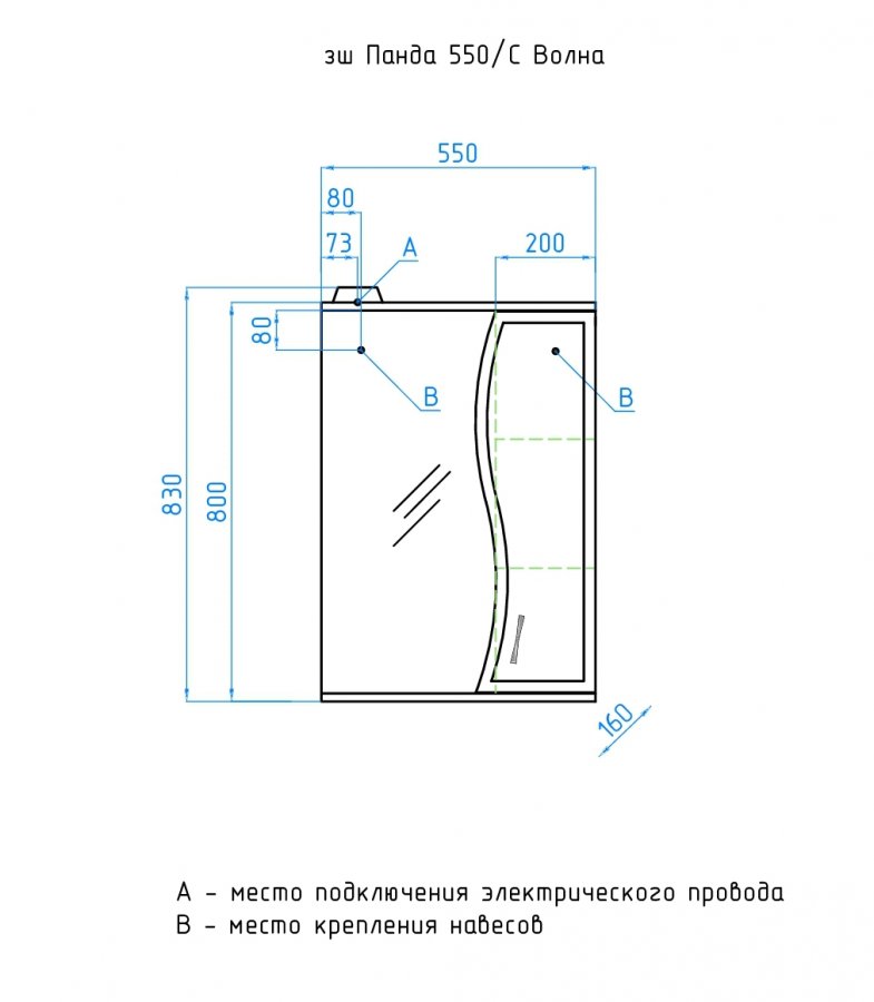 - Зеркало-шкаф Панда Волна 55/С (ш/г/в): 550x160x830 мм