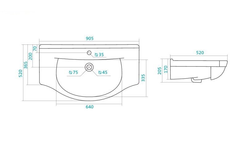 - Раковина Эльбрус 90 (ш/г/в): 905x520x205 мм