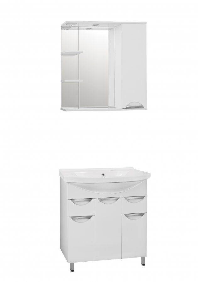 Напольная мебель в белом цвете Style Line Жасмин 80 – это достаточно габаритная модель, предназначенная для оснащения просторных ванных комнат. Укомплектованная множеством отделений с системой доводчиков и направляющими, она позволяет удобно распределить необходимые принадлежности по полкам и ящикам. Комплект обладает элегантным дизайном и изготовлен из качественного ДСП, и МДФ материала с влагостойким глянцевым покрытием.