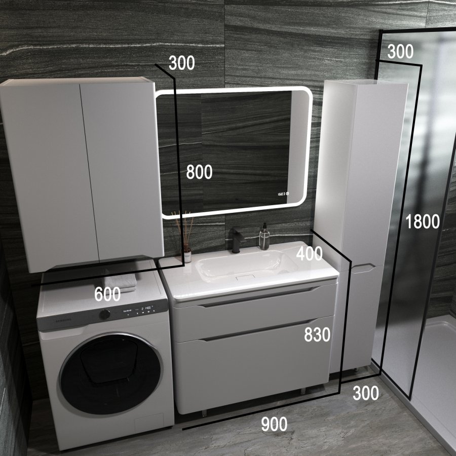 Тумба с раковиной Style Line Марелла 90 Люкс Plus белый матовый антискрейтч