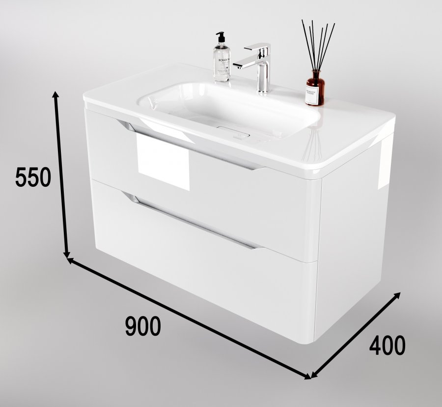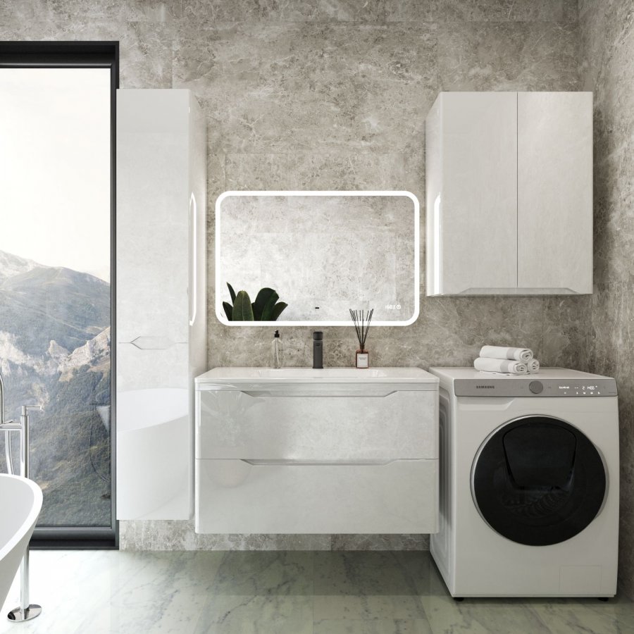 Тумба с раковиной Style Line Марелла 90 Люкс Plus подвесная белый глянец
