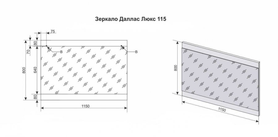 - Зеркало (ш/г/в): 1150x10x800 мм